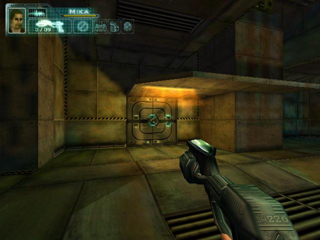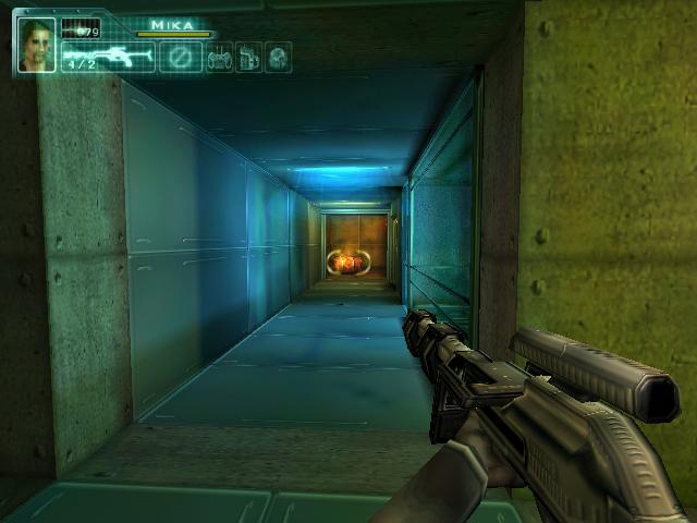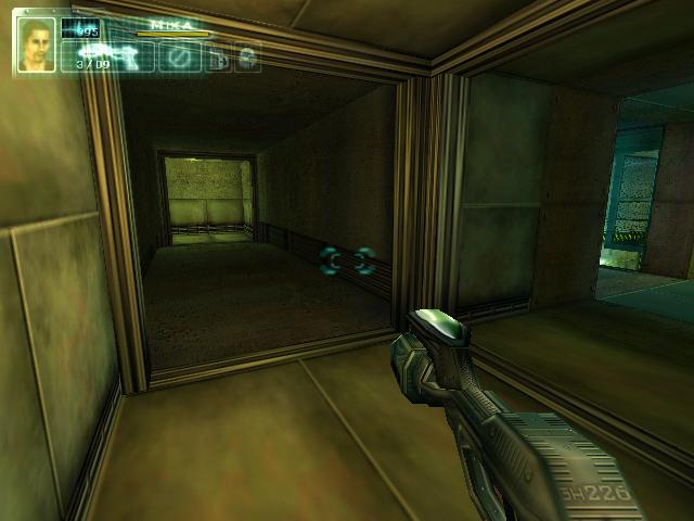 从这里过去,用绿卡打开装置,注意上面有埋伏,上楼梯后看见机器人就用手柄秒,还有个小飞机会从楼梯上来。打完后按下开关,在限定时间跑出那道门,从炸开的墙洞走就不会碰到机关,跑出门后第五关结束。