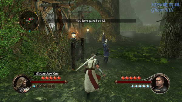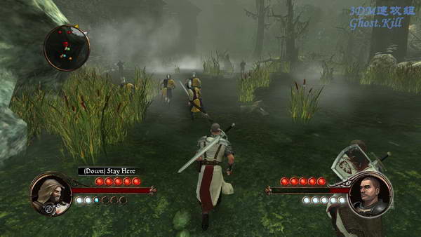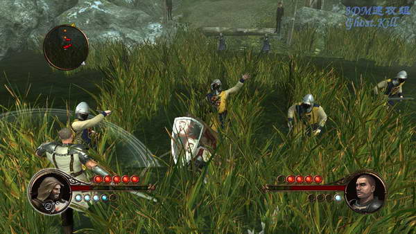 继续一边暗杀敌人一边前进,沼泽里的草比较高,也有舞,路看不清楚,可能会走错路,注意观察草丛间的缝隙。
