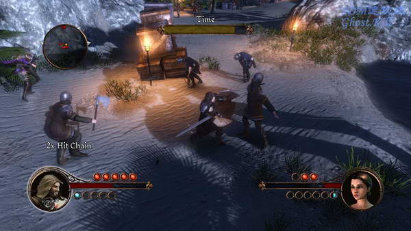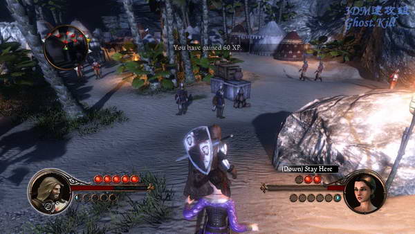 接下来的地方左边两个敌人可以暗杀,剩下的要拼刀,一旦被敌人发现就要在屏幕上方时间条走完前杀光。