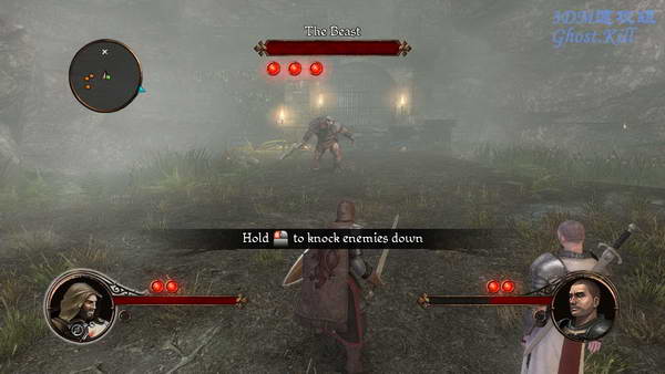 看他砍了两刀之后在过去继续攻击他,之后他会对着他的面前来一重击,不过在背后攻击他的话就没必要躲了。