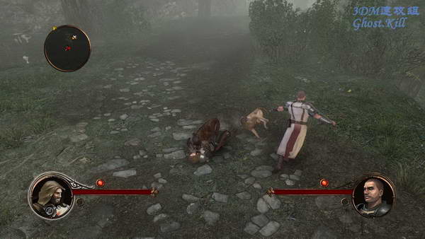 走一段路后到过桥到悬崖对面,两只狗狗边叫边冲了过来,我热情的张开双臂把狗狗拥入怀中,然后遭到一顿乱啃。连按左键挣脱干掉狗狗。这个例子教育我们以后见到狗狗要按右键秒杀掉才行。