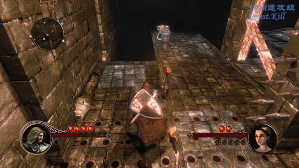 明着的机关都比较容易,麻烦的是暗着的机关,看到地上有眼,或者两边墙上有刺得地方要注意,按住ctrl前进,看着地上发光的地方不要踩上去,看到有尸体的地方也要小心。