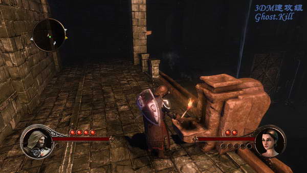 来到一个能下楼的大厅,先到这里点燃火盆,整个房间亮了起来。