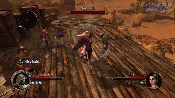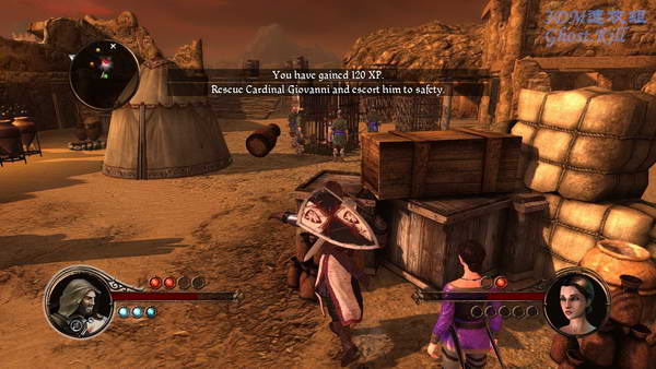 继续去下一个目标点,这里要救笼子里的人,先用罐子声东击西,然后背后解决掉几个敌人,杀光敌人后救出笼子里的人,然后掩护他离开。