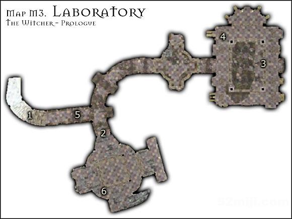 回到实验室台阶处(图2.4),看到受重伤的Triss特瑞丝。现在,你还不能帮到她。