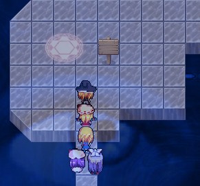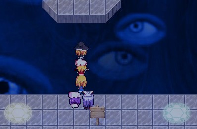 然后一路走到山顶,吧⑨和蕾蒂打败,注意先杀雷蒂,雷蒂不死,会一直给⑨补血。这里最好全员戴免疫冰封的项链,我因为等级压制了,另外戴了魔抗的项链,所以就2小姐会被一直冰住,其他3个人把⑨灭掉的。