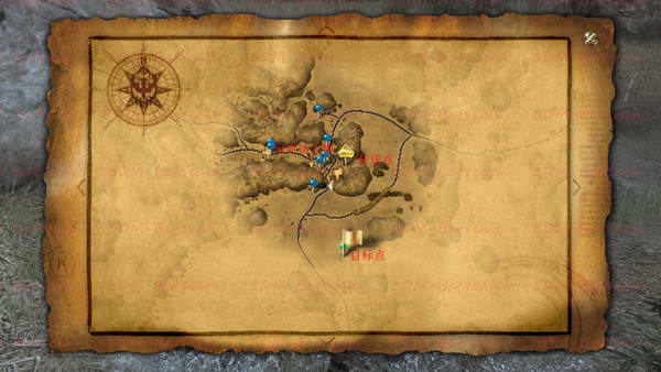 下面来可惜啊地图。本游戏的地图标示如下图。三角形的则是你的传送点。蓝色标签则是可对话的NPC,基本上都是有相关任务可以触发或者了解的
