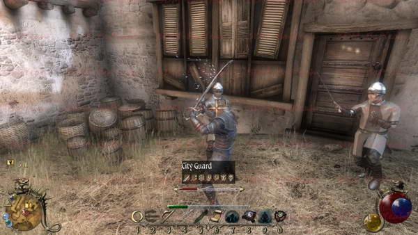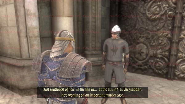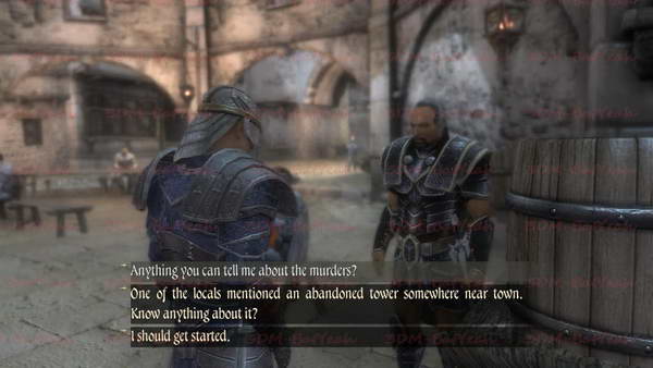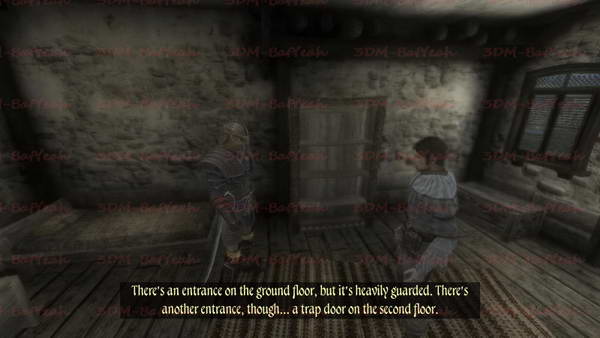 同他对话。他希望你帮忙找到治疗他母亲的药,然后才肯帮助你。他会告诉你药放在镇外西部的屋子里面。但是第一层的入口有两个守卫戒备,基本很难靠近