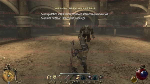 下面就是十一场竞技场挑战。这里没有规则,基本你打败对手就可以获得胜利。然后回去同竞技场的指挥官说话继续下一场比赛。