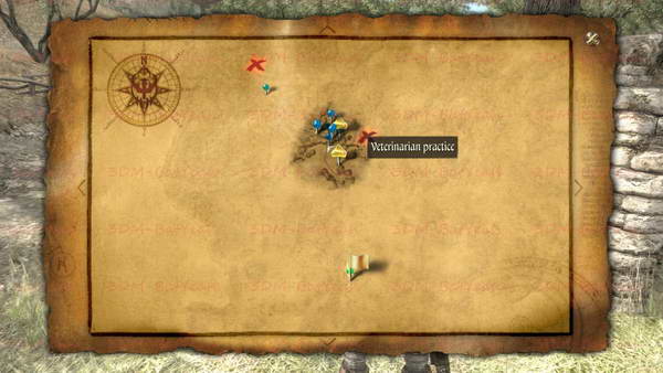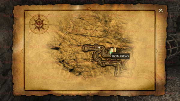 打开FT6看地图,有X的标识则是该任务的进行点。而最下边的黄色标识则是我们的RUNESTONE任务的跟踪目的地。你进行杀鸵鸟的任务的时候也可顺便去南部的洞窟拣去第二个符石