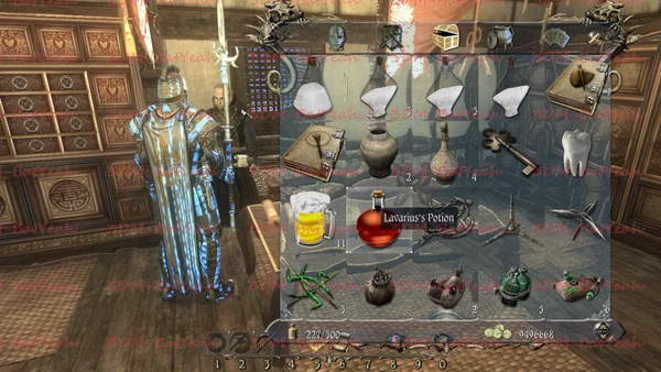 第一个任务就是要试验他制作的药,和他对话完毕,打开包裹栏,点击LAVARIUS'S POTION,使用然后在和他对话