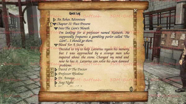 然后他会请求你去城外的一个地点来帮助他回复以前的记忆。开启BLOOD A STONE任务。不过这个任务你没有必要做