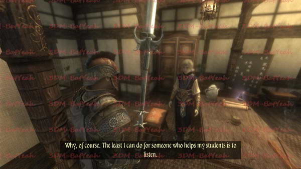 然后在来到刚才上锁的房间旁边的房间,同里面的盲人老师说话,他会请求你去找一个魔法师来停止他伤害学生的行为