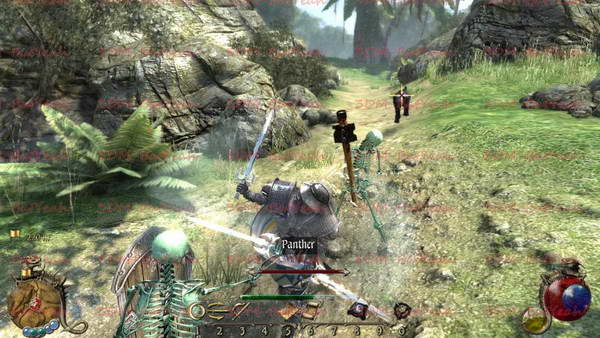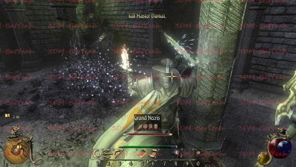 同DAMAI说话,很明显他不愿意交出来OCLUCS,没办法杀了他吧。DAMAI是亡灵法师,他会召唤出来很多强力的骷髅。但是他的近战防御却很低,所以一定要使用近战武器疯狂的攻击他,避免他招出来更多的骷髅来对付你