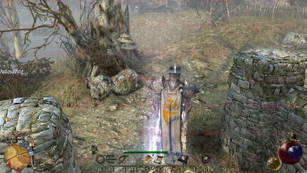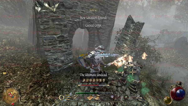 这个家伙也就是个血厚,其余的没有什么优点。干掉他之后洗劫他的尸体,然后从诅咒墓地中间的区域回到城镇