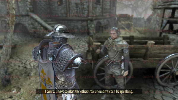 前进到城镇,见到了AIDAN。和他对话完毕再去左边的教堂找牧师