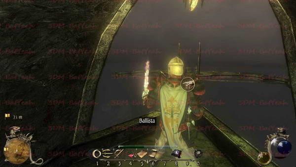 弓弩的使用方法,就是按鼠标左键启动,然后等到拉到弓弦到最大的时候在释放出去。这里一定要吧弦拉到最大才能有效的攻击到BOSS