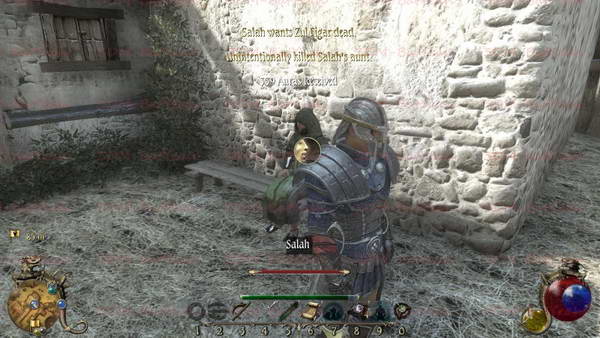 然后SALAH会让你去酒馆中心的人要材料,给他900金币就能买得到