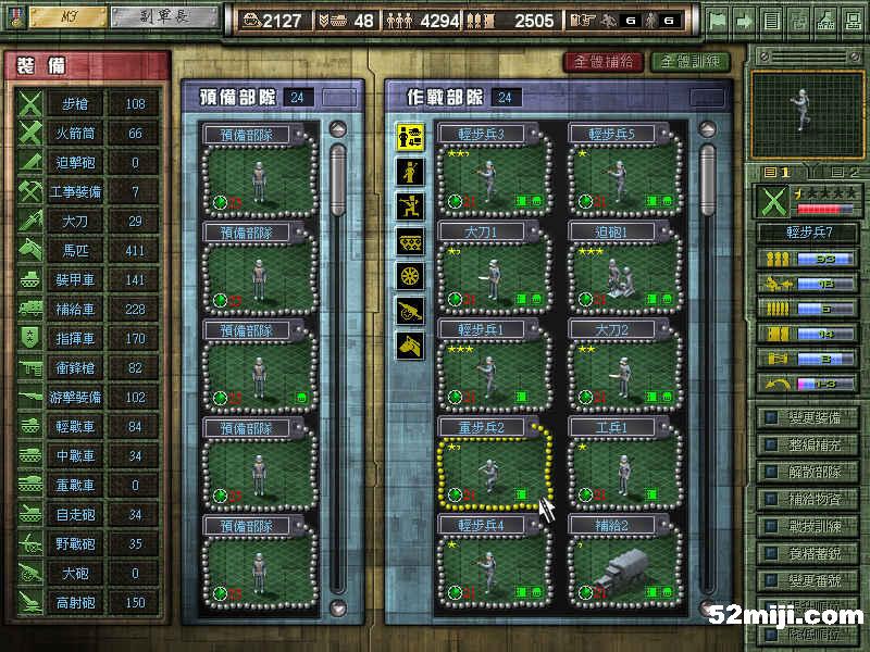 战后升师长,补充物资800。终于有了6级的部队,改为迫击炮(扣5%经验),也可以拆为多队,但那样太过分了,限定不准使用单兵战略炮兵吧。