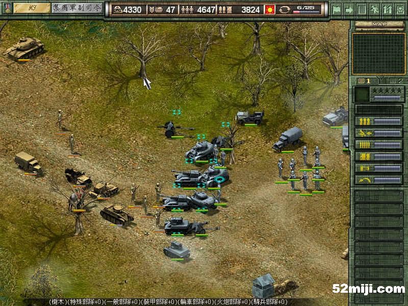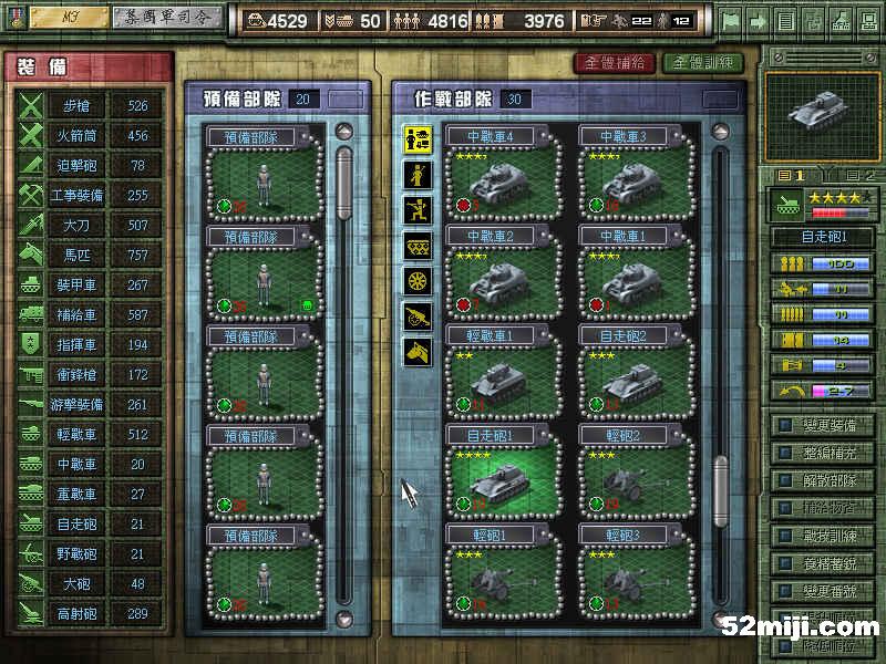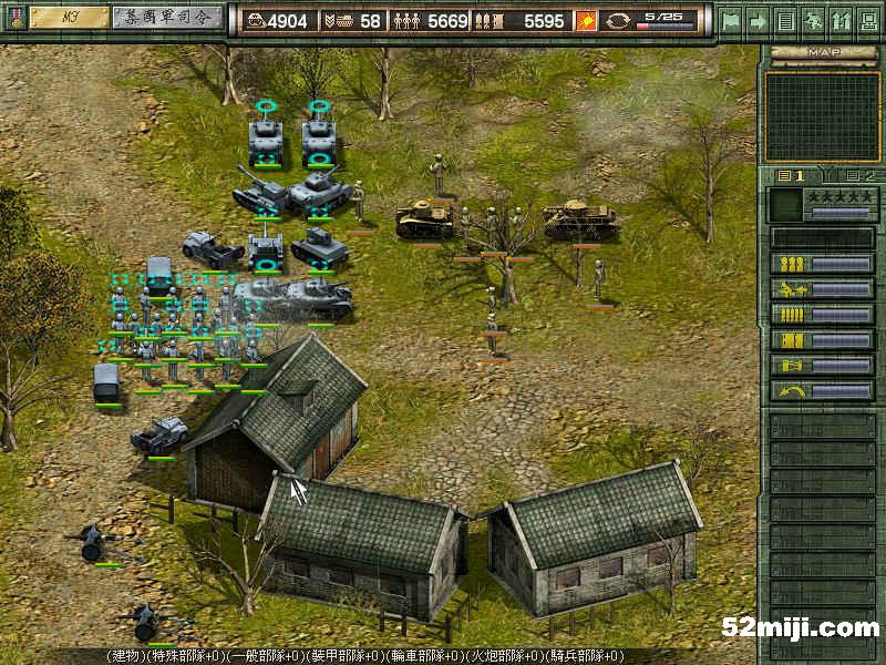 和上一关相似,战车先行,在三叉路口布阵,敌军基本上是沿着路的左边走,因此炮兵在右边构成犄角,迫击炮辅助。轻重步兵完全没用,老练扫雷也没意思了。