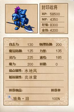诚如战后灵M所想守卫能力居然在鬼凯剑魔之上,稍微强于4召唤,嗯嗯当年帝国的实力可想而知是多么发达(误) 弱点水,地,风。之前得到的王石可派上用场,其魔防较之前的雷兽相当低些所以魔攻能打出较高的伤害。注意加速,防,血即可。