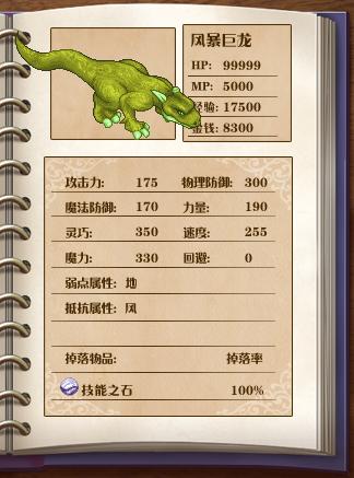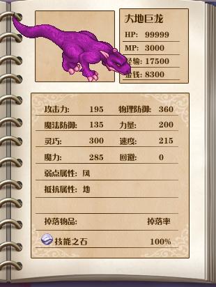 看看~虽然狂但人家是有实力的!!能力全面凌驾之前的利维亚桑,HP,物防优秀~弱点冰,水。身上有对应的石头没?如果没有那只有拿召唤打了,战前可装备耐炎,暗的防具抵抗伤害。。虽然强但此时队伍应该也不弱吧?!攻略到这里10分钟解决战斗,你用了多少时间呢?{:4_94:}