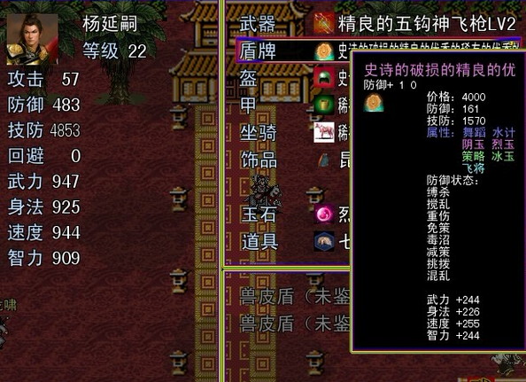 武器升级过程中有几率会失败,先用武器精炼石1级把武器升到lv1,之后需要武器精炼石2级来把武器升到lv2,如果失败的话,武器仍旧是lv1,但是数值会发生很大变化,攻击力比之前高不少,其他能力附加值却变成负的了(比如武力-1,身法-2,速度-1),这样武器实际上是比原来lv1的时候厉害了很多,因为攻击力上去了很多,只要你有足够多的武器精炼石,完全可以用这个方法刷出比正常升级时厉害很多的武器,lv0升到lv1失败没有这个现象,我没有去多次尝试,只是发现了这个bug,防具没试过。