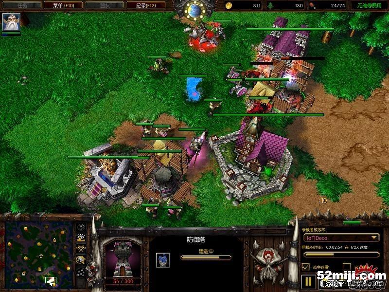 在比赛的第2天xiaOt和[aT]Deco进行了一场对战,[aT]Deco到是聪明不愿意步Inso的后尘,前期试图建造2个箭塔进行防御。谁想到正是由于这2个塔拖延了2级升级的时间(其中一个塔还在xiaOt的骚扰下2次都没有建造成功并且损失大量木头),而中期xiaOt召唤2英雄NAGA 进行RUSH,在7分钟内就解决了战斗。