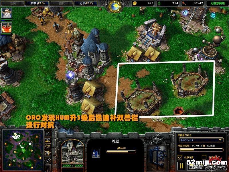 2英雄招募了火焰领主,并补双神秘胜地出法师,并在其部队为成型前骚扰ORC,延缓其英雄的升级速度,并生3级基地准备出骑士+双法的组合。