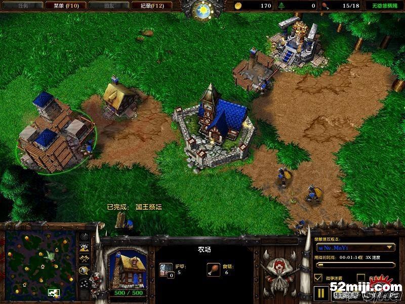 2.传统开具通常是祭坛/兵营/农场的开局,造完祭坛或者是造完兵营的农民变民兵探路,以TR为例应先探近点,如果对手近点要早早圣塔,通常近点的ORC会选择直接骚扰HUM MF和基地。远点可以在升基地后建造圣塔,尽早减少HUM升到2级的时间。