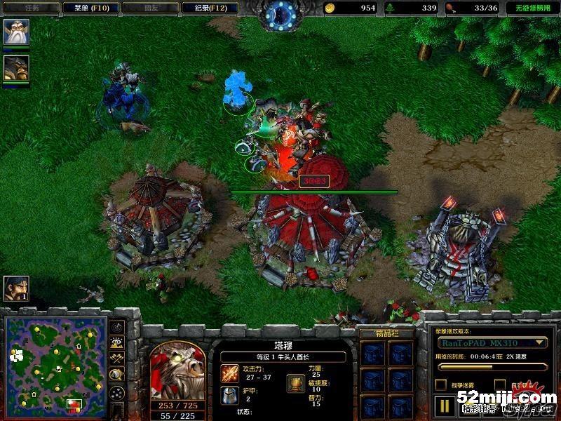 再就是注意自己的英雄的站位特别是拥有速度卷的后的ORC很容易围住站位不好的大法师和兽王迫使其回城。注意牛头放冲击波的动作,抬起斧头那个冲击波动作的一瞬间,立刻拉走在牛头朝向的那一条线上的部队。当部队空血后便返回基地。留一个豪猪先放ORC视野以外,稍等片刻后,冲进ORC基地去攻击那些加药膏的ORC部队。