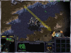 *从壕沟里打过去: 9:00 & 6:00 之间,12:00 & 11:00之间都有一条沟,利用运输船+tank 抄近路打过去!Protoss 对此除了扩张以外毫无办法。(如果你愿意,可以带几个农民把路口封起来)