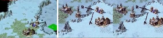 很简单,对手就在对角。可冰天有两个绝佳位置:3号位和7号位——3号位非常便于拉中和半拉中,与之 想对角的8号位会吃尽苦头;7号位可以很容易的延伸建筑到中矿间采富矿。如图