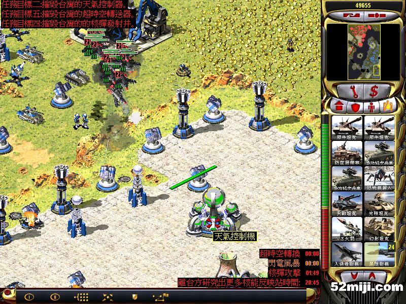 五:黑鹰战机摧毁台湾基地建造场,核弹,心灵控制器,铁幕装置,天气控制器,超时空装置,任务过关