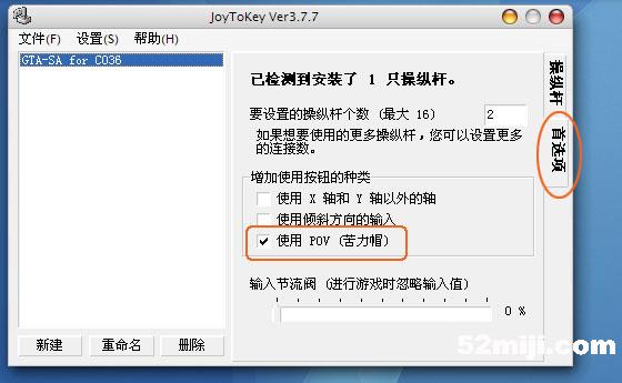 Joytokey 设置,先在它的选项里选中“使用POV”