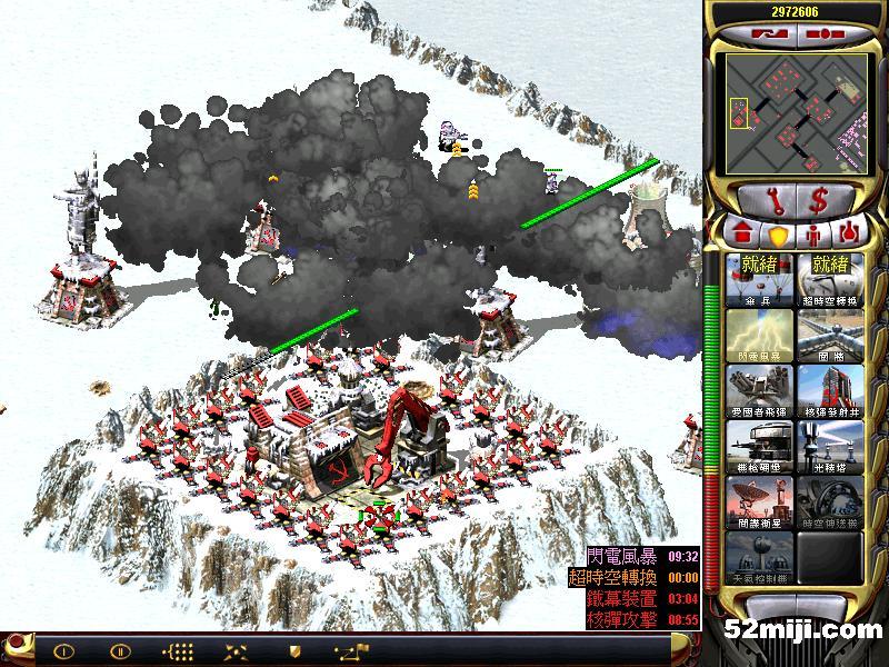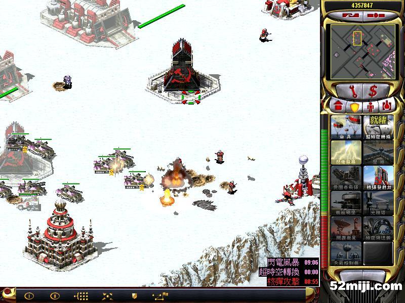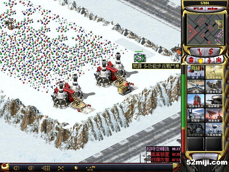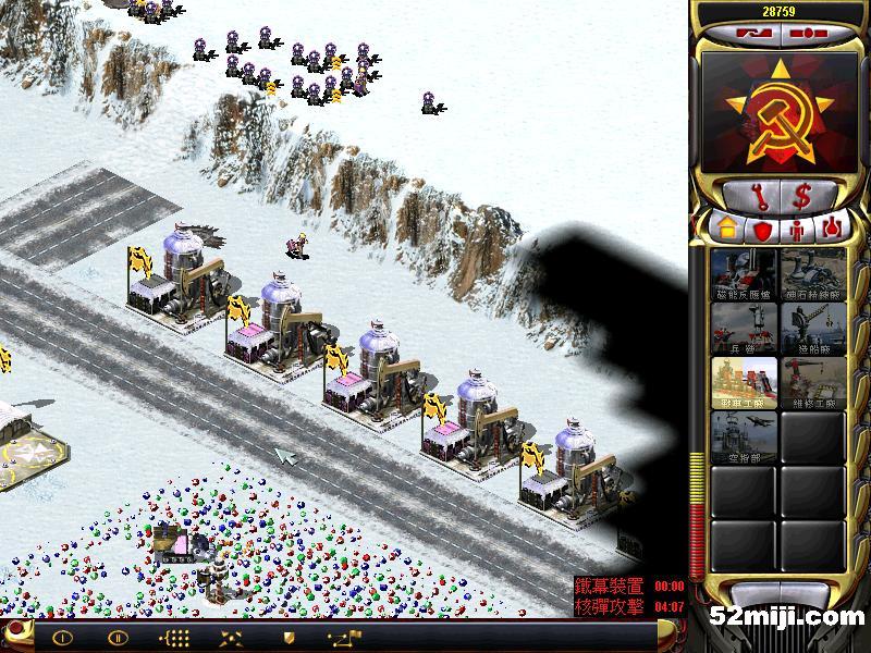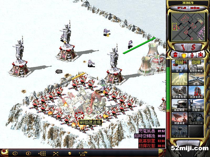 期间把建筑出全,先出超时空,解放军不能少,战车工厂在此摆放,防敌人核弹,(8)