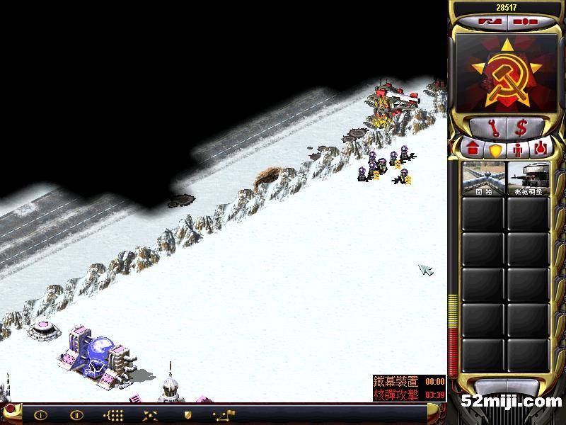 第四关:游戏开始,出电站,兵营、矿场、战车工厂(两个)多出解放军,在这两个地方蹲守,同时工程师占领油井(4-5)
