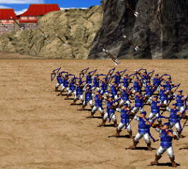 【技能说明】施展时,派出两行的弓箭手,齐射向天空,落下时,以箭雨的威力,刺向敌军
