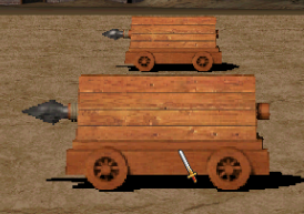 【技能说明】派出四辆战车,战车前头安置一个巨大的铁刺,战车快速的在战场上移动,攻击所在直线上的所有敌人