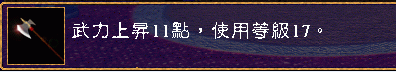描述 = 武力上升11点,使用等级17。