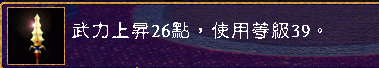 描述 = 武力上升26点,使用等级39。