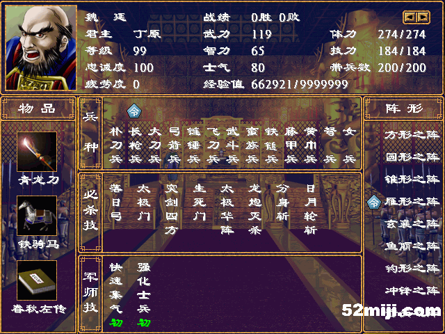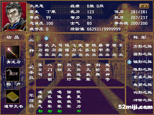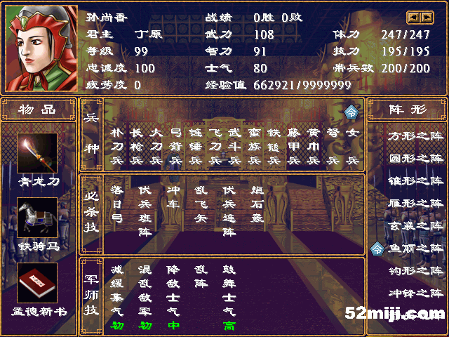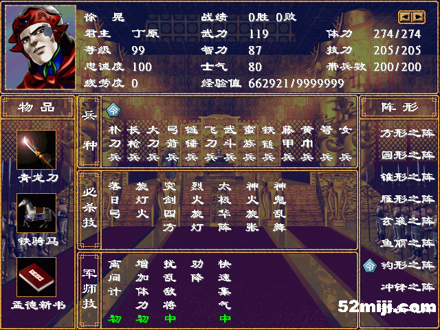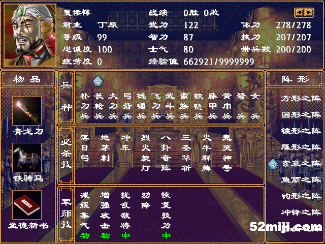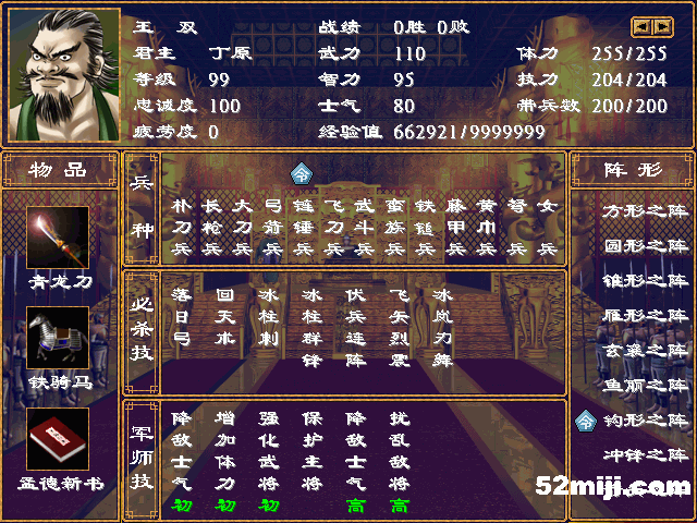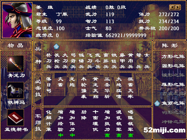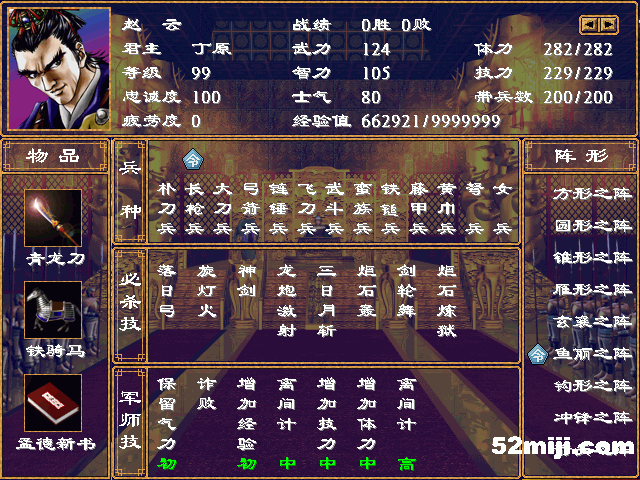 军师技能:96(智力比不过四大军师,少一个实用技能增恢体高)