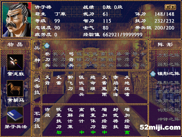 军师 减少疲劳 恢复体力9 扰乱敌将中17 偷袭敌军24 降敌士气高31