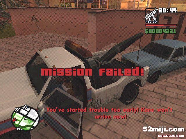 任务Los Sepulcros任务中那辆Admiral是无敌的,该车不易发现它停在前门,而你是从后门进去的。其实任务中,你应该能发现它,这时又要发扬见车就打的风格,打它一下发现打不坏OK又一辆无敌车出现。先用拖拉机拖,当然也可以用拖车,说到拖车我就是气,只要出现了无敌车,你就不要想在街上抢到拖车,平时码头附近拖车到处都是,这时见鬼了,半天都找不到一辆,所以事先在车库里放一辆以免后患。发现拖不动,那就推,晕~~~~推都推不动,真没办法了吗,因为我只顾推车,尽忘了SWEET,他被打死了,我才不管这些,我继续研究,我惊奇地发现,那辆Admiral能推动了,而且还能被拖起走!!于是我发现这一规律:推或拖不动的车,先让任务失败,然后再拖或推就行了。