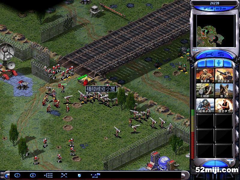 任务目标二:各个击破、摧毁所有残敌据点!(本任务关比较精妙,地图设计特别有趣,隐藏有很多情节。必须消灭所有的敌人建筑后才能顺利过关。开始时利用尤里探路再强制控制公车在地图左下方,利用车载工程师的特工技巧探路顺便占领心灵器,分化韩军,否则必被狗狗咬死,够惨!然后就是依次进攻,记得保护大桥,被炸毁不给你修复!此外小村绿色建筑被毁获得援军,要想最后过关你还需好好思考下,猛攻未必能过关)