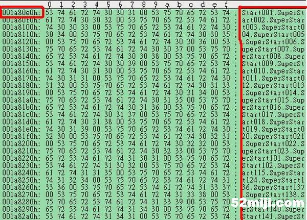 用 UltraEdit-32 或类似工具打开 Script.so ,找到 001a80e0h 这一行(图1里左边红框里的位置),在右边红框里的 SuperStartXXX 就是对应各必杀的代码,后面的数字与SuperAtk.ini里的编号对应,对照 SuperAtk.in i找到想要修改的专属必杀,把对应 SuperStartXXX 的第一个数字改为想要的武器系别 1为剑 2 为扇 3 为大刀4 为枪5 为弓6 为全系,把SuperAtk.in i里要修改的专属必杀的编号改为与Script.so里的数字一致,把General01.ini里拥有该必杀的武将的必杀编号改为新的编号。