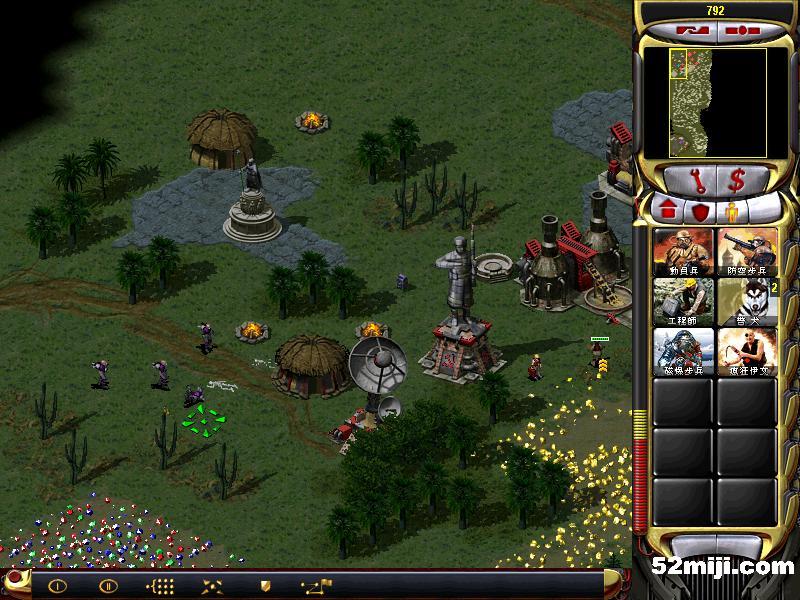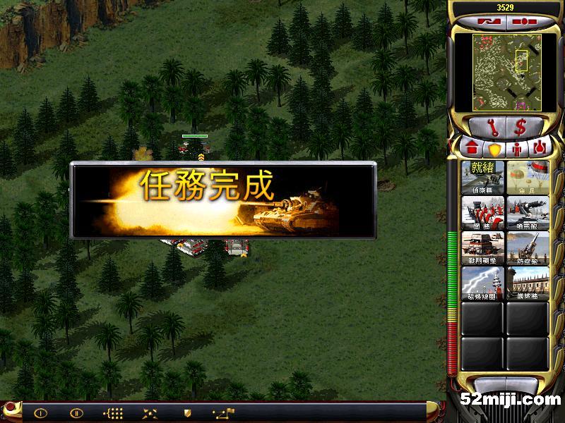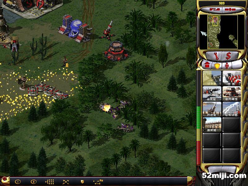 第一关:战斗精英兵摧毁山口两个盖特炮,然后摧毁尤里作战实验室(1-2)