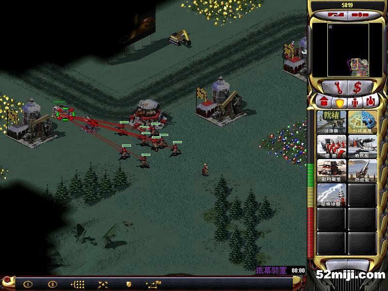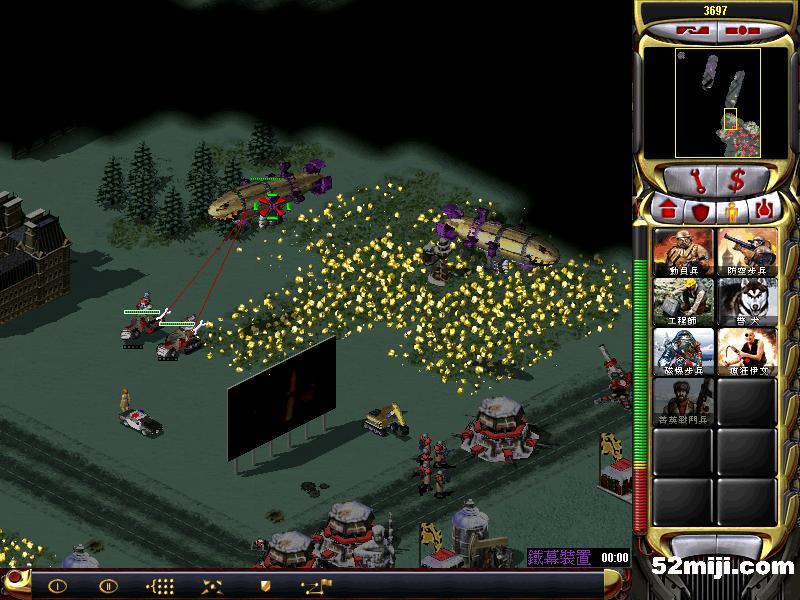间隙出两辆防空车和放空炮,在这个方向对付敌人飞艇,基地内部出几个狗对付敌人空降(4)