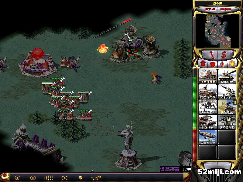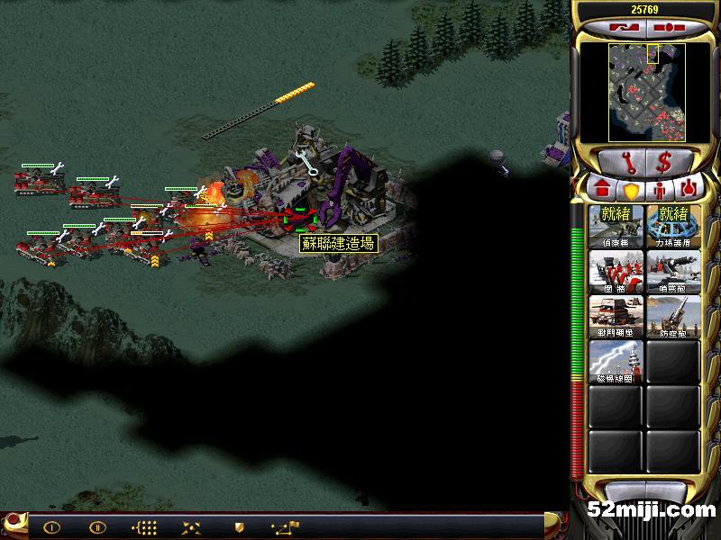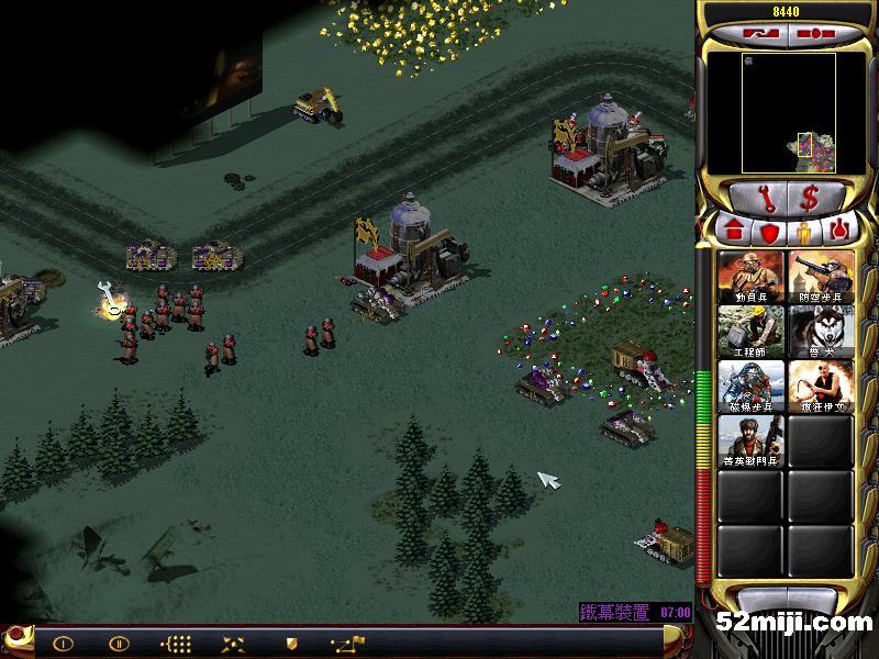 再出坦克,集中前行,摧毁敌人无敌和核电站后,直奔敌人建造场,摧毁(6-7)
