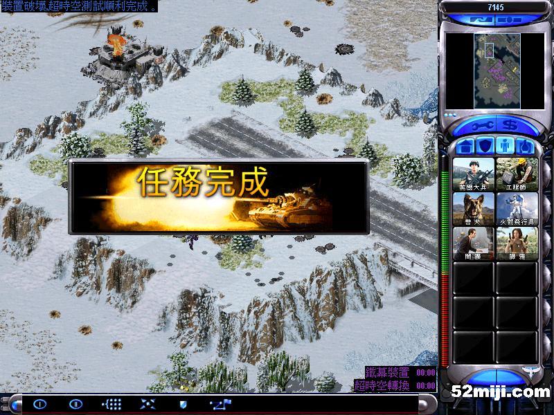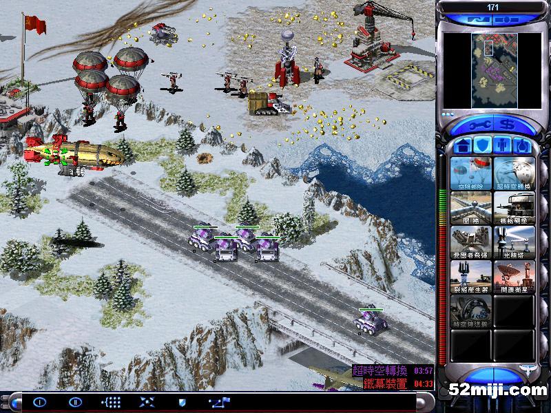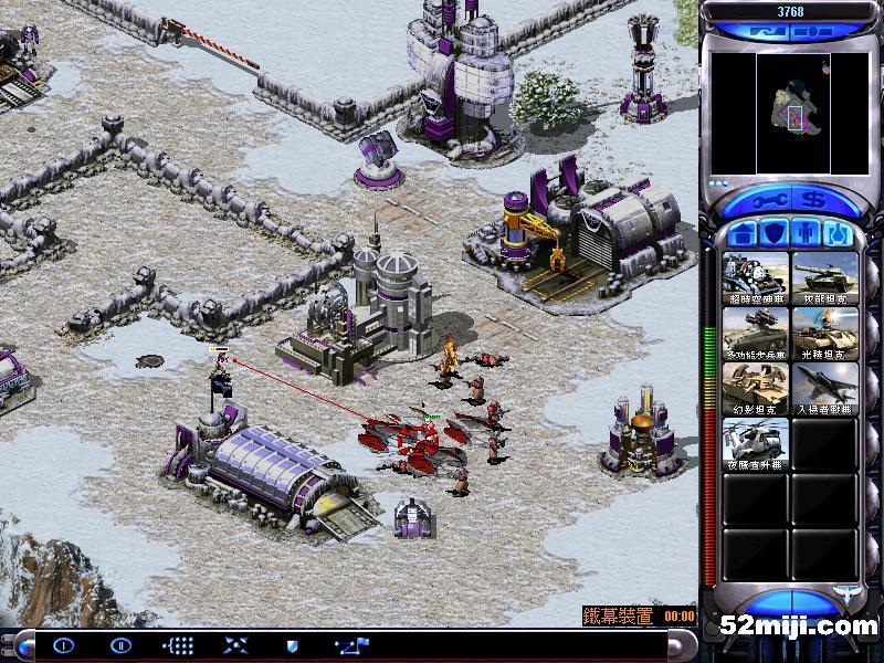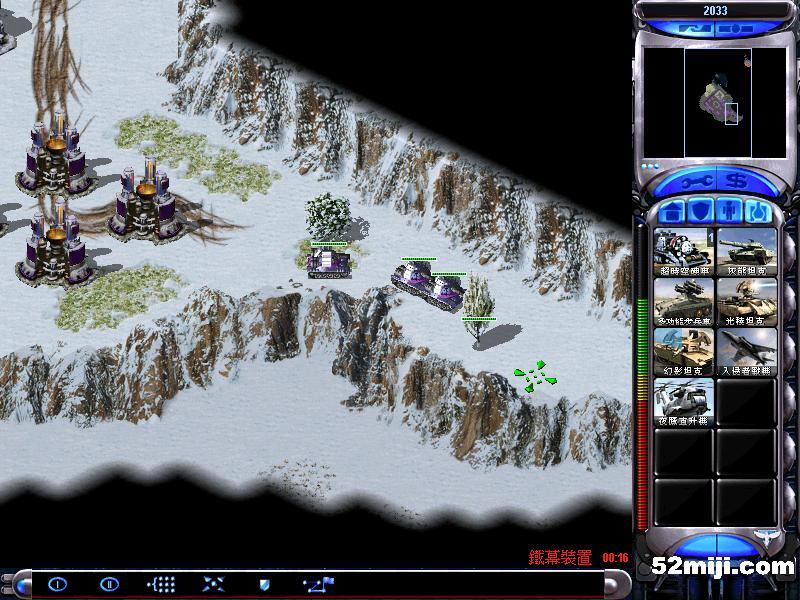第四关:开始,迅速出幻影坦克,在这三个地方防御第一个地方开始敌人只有兵,以后会有自爆卡车,第二个地方敌人有兵和坦克,第三个地方有敌人天启和蜘蛛(1-3)